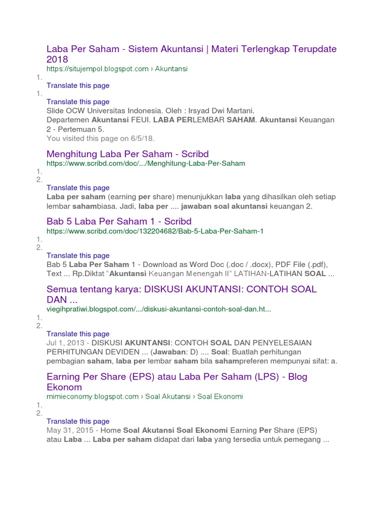 Contoh Soal Dan Jawaban Laba Per Saham Dapatkan Contoh