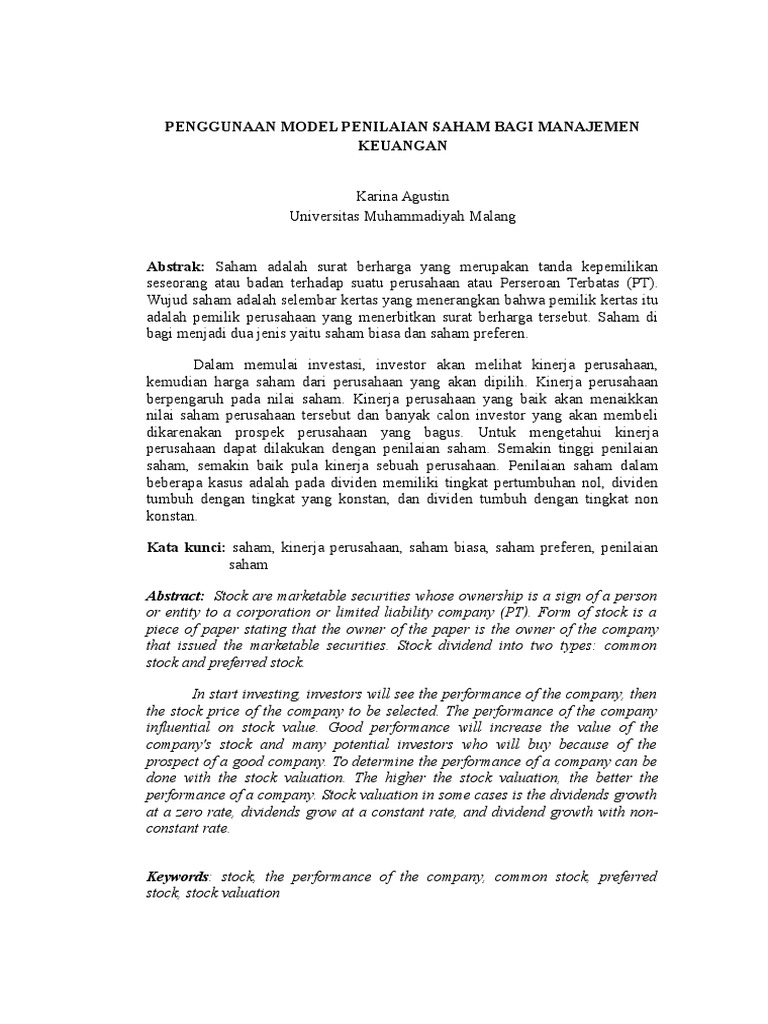 Bab 5 penilaian surat berharga. Penilaian saham / manajemen keuangan dalam penilaian saham dikenal adanya tiga jenis nilai: Namun ternyata tidak banyak ahli manajemen keuangan yang memahami mengenai penilaian dalam melakukan merger dan akuisisi.