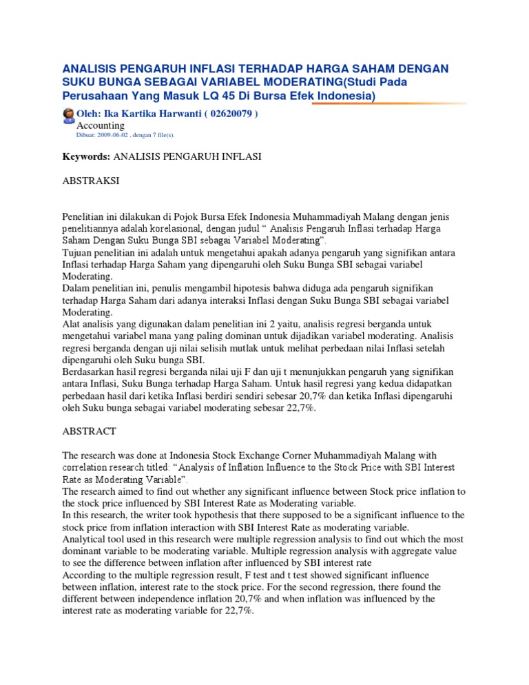 Analisis Pengaruh Inflasi Terhadap Harga Saham Dengan Suku