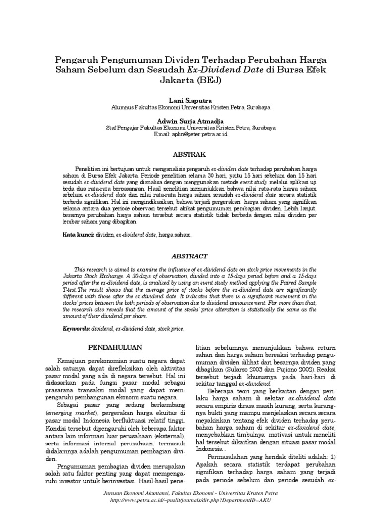 Pengaruh dividen terhadap harga saham. Pengaruh dividen terhadap harga saham a. Sebagai fungsi ekonomi, pasar modal menyediakan fasilitas untuk memindahkan dana dari pihak yang memiliki kelebihan dana (lender) kepada pihak yang. Latar belakang dari penelitian ini adalah harga saham dipengaruhi beberapa faktor yang salah satunya adalah informasi mengenai dividen.
